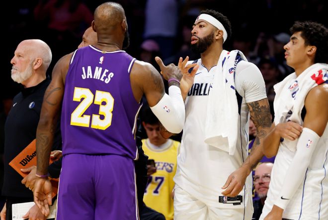 自从詹姆斯复出后,场均出战32.5分钟,能够拿到16.5分5篮板8.3助攻1抢断,两项命中率49%+33%。实话实说,相较于过去的22个赛季,詹姆斯本赛季数据明显下滑,效率也下降不少。用洛杉矶媒体话说,老詹本赛季在球队的地位,应该在东契奇和里夫斯之后。确实,东契奇和里夫斯真挑不出毛病,东契奇场均35.1分8.5篮板9.4助攻,里夫斯场均28.5分5.9篮板6.7助攻,这可是全联盟最强进攻二人组。即将41岁的老詹,显然很难从防守端给予球队帮助,列一个数据,本赛季詹姆斯在场时,湖人防守效率126.7;反之114.0。